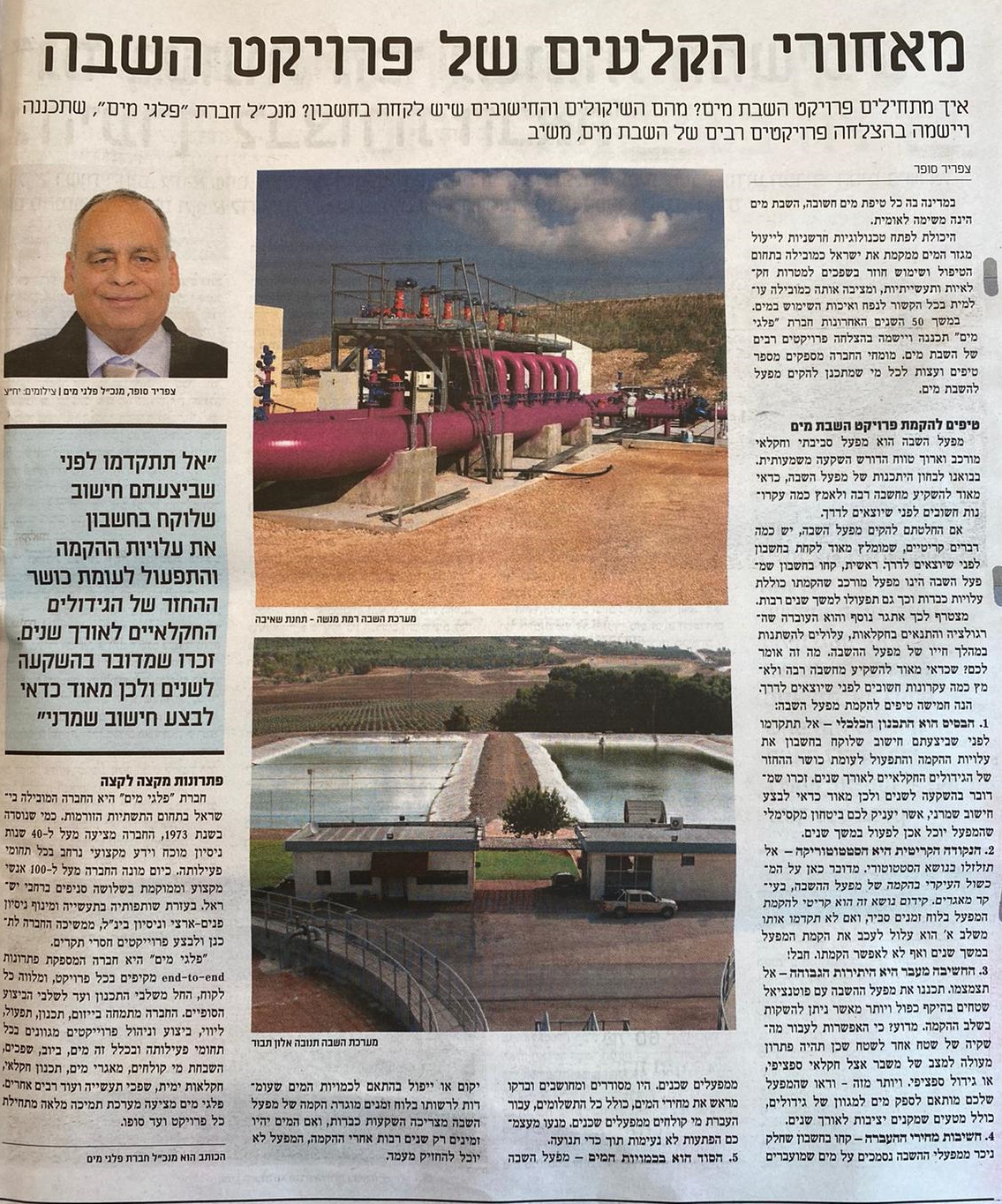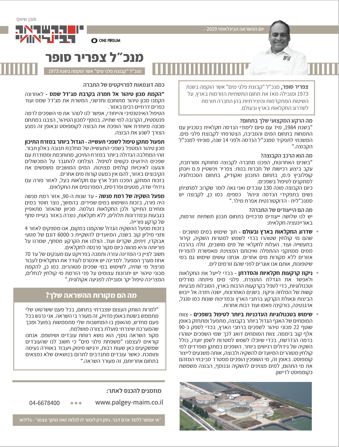 צפריר סופר, בוגר הטכניון בפקולטה להנדסה חקלאית, תחום מים קרקע וסביבה, פועל בתחום כבר למעלה מ-30 שנה.